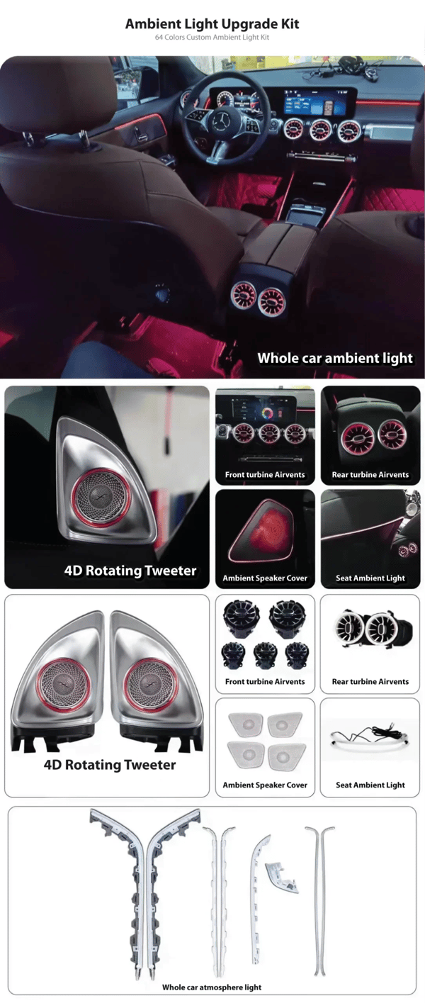 Set 64 Colors Car Interior Ambient Lighting For Benz GLB 180 200 2020-2024 W247 X247 Front Rear Vent