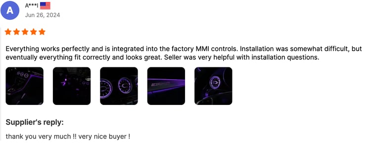 In terms of product quality, we always adhere to the principle of excellence. Each ambient light undergoes strict quality inspection, from the selection of raw materials to the control of production processes, to the aging test of finished products, and every link strives for perfection. The product has an ultra-long service life, can emit light stably, and has extremely low energy consumption. While bringing you a beautiful visual enjoyment, it will not increase the burden on the vehicle.
